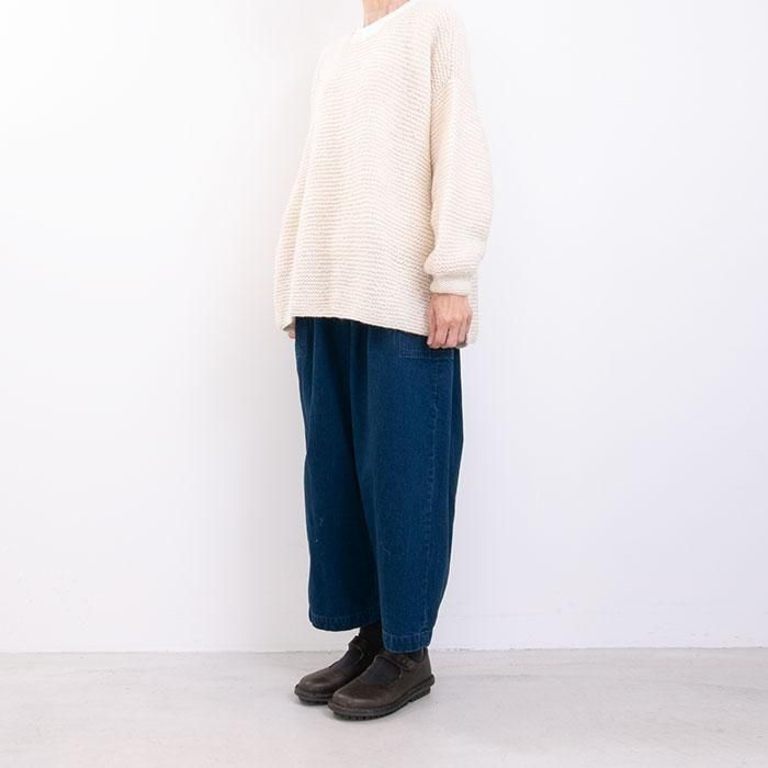 - homspun ホームスパン パンツ・10ozデニムギャザー (ブリーチブルー/M・ミディアム)