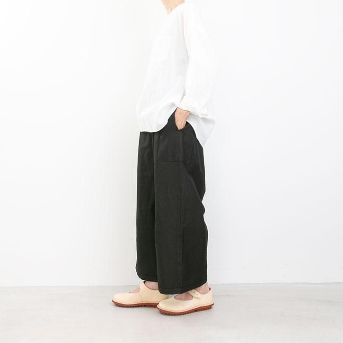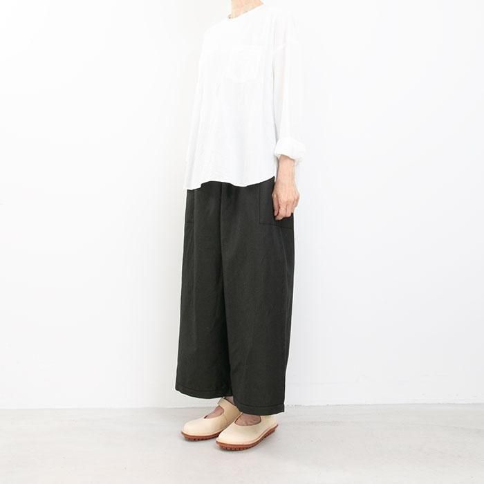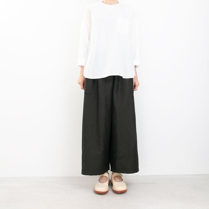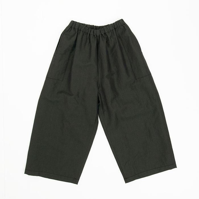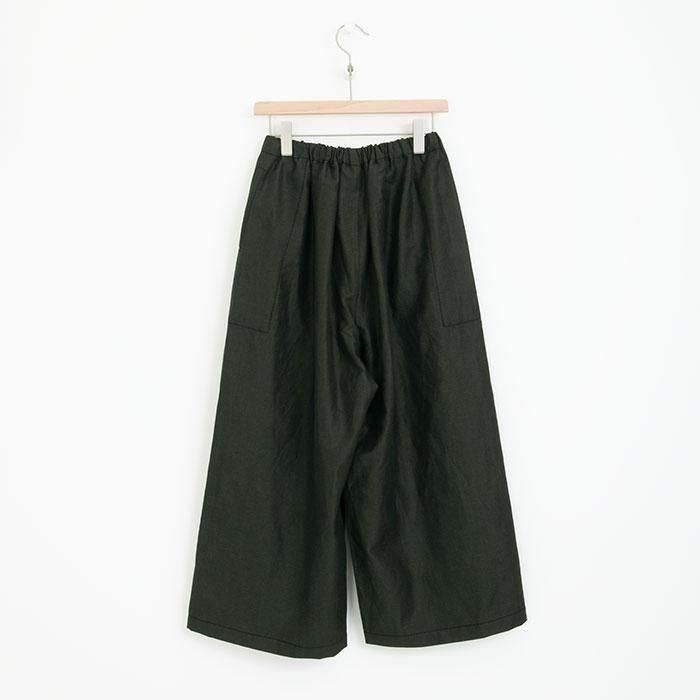 - homspun ホームスパン ウールリネンワイドギャザーパンツ(ダークグリーン/ S)