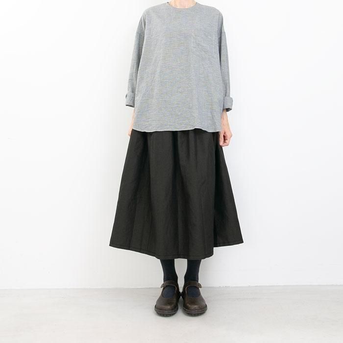 - homspun ホームスパン ウールリネンフリルポケットスカート( ダークグリーン/S)