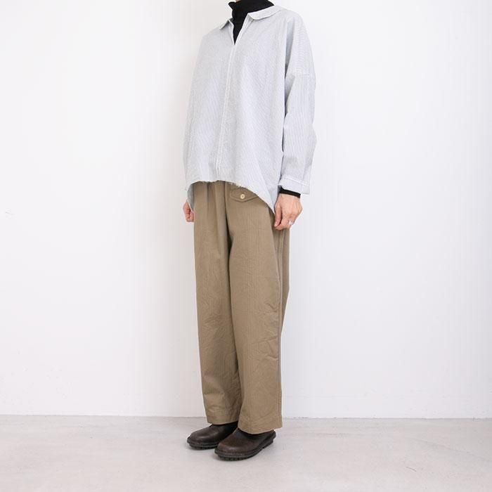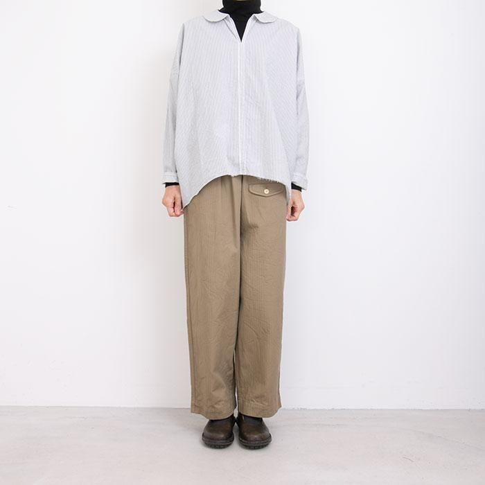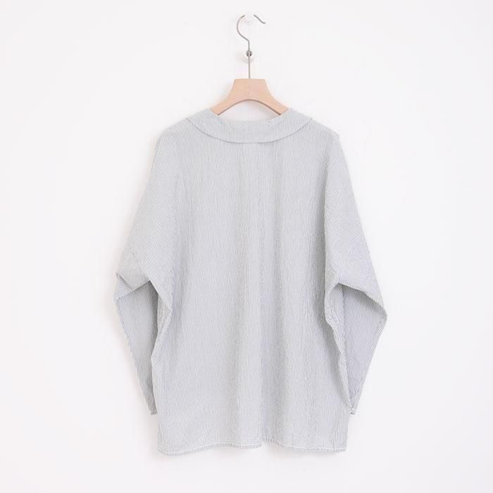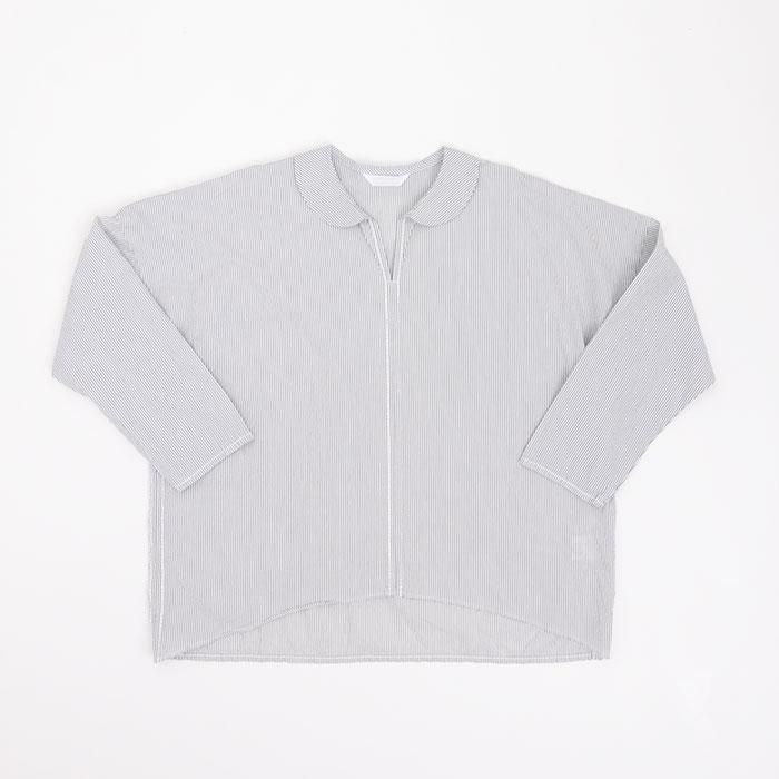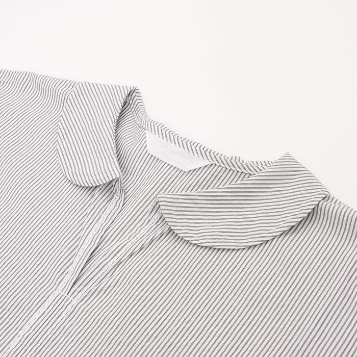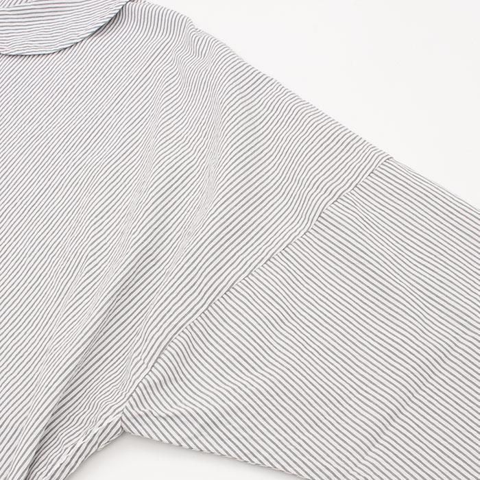 homspun ホームスパン ハイカウントクロス丸襟プルオーバーブラウス (ストライプ)