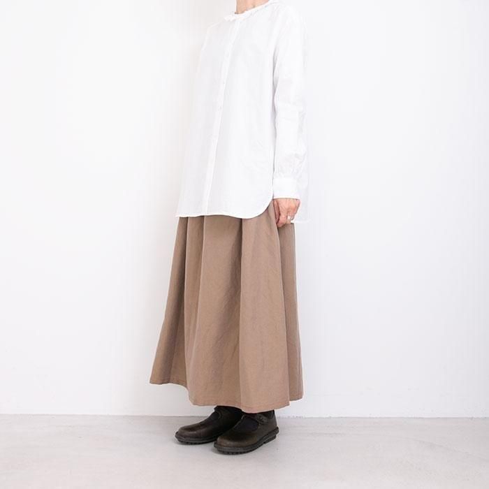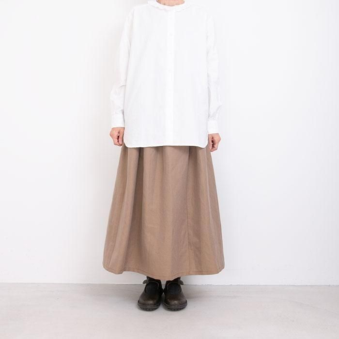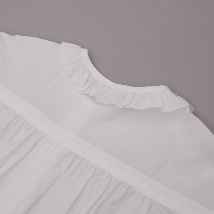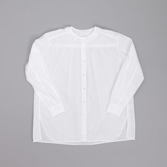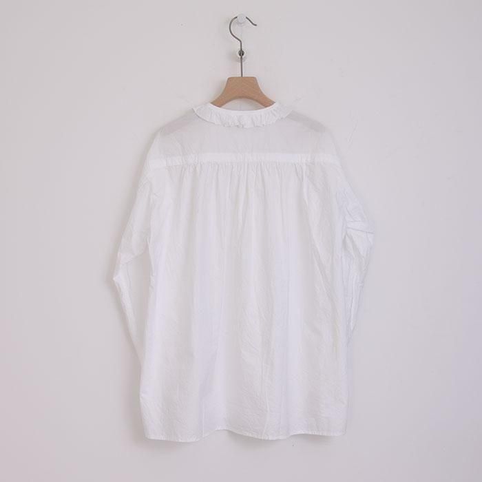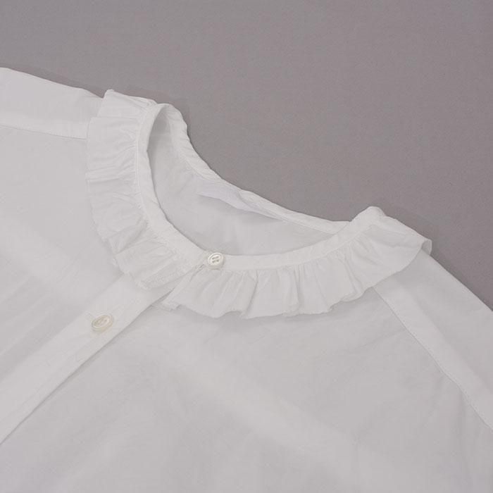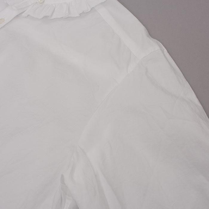 homspun ホームスパン ハイカウントクロス フリルブラウス(ホワイト)