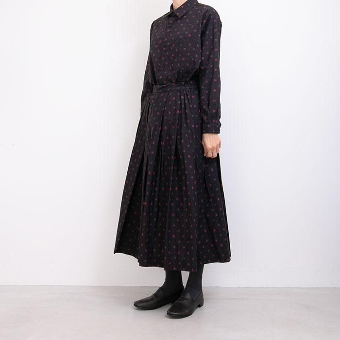 上質なリバティプリントのタナローン地がシルクタッチも心地よく、甘さを抑えた大人の雰囲気です。