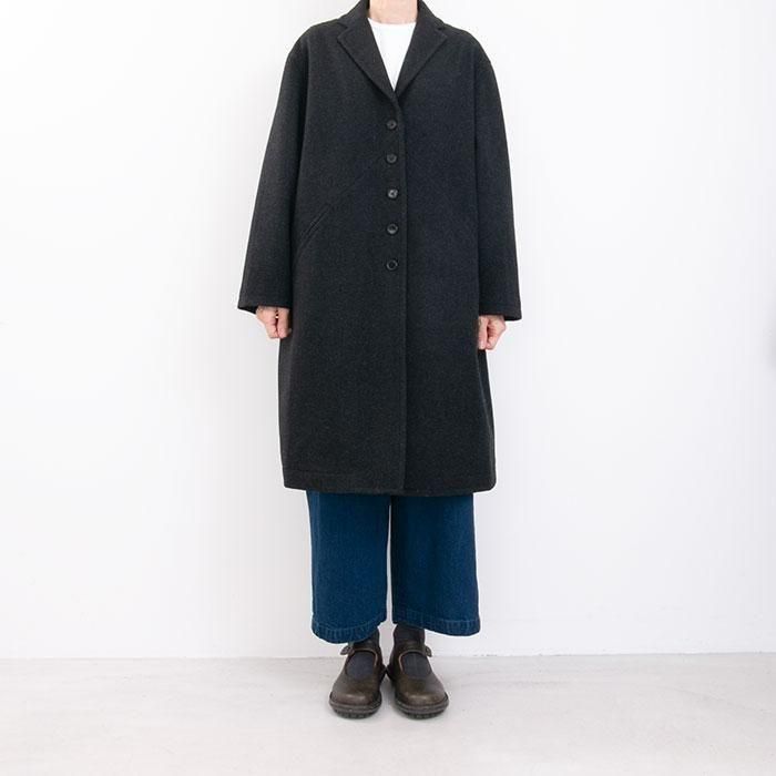 homspun ホームスパン ウールフラノテーラーカラーコート (チャコール)