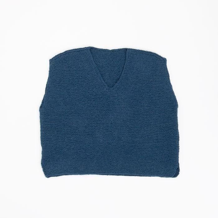 - ゴーシュ アルパカウールハンドニットVネックベスト(ブルー)