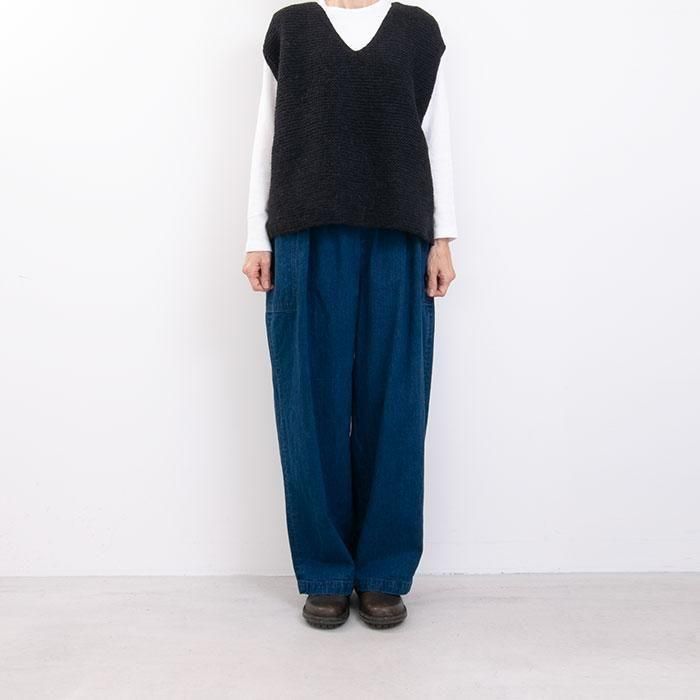 - ゴーシュ アルパカウールハンドニットVネックベスト(ブラック)
